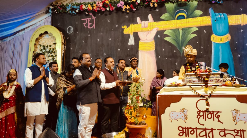 भक्ति और श्रद्धा के रंग में डूबी प्रथम विहार कॉलोनी: भाजपा जिलाध्यक्ष शेषराव यादव ने किया कथा श्रवण