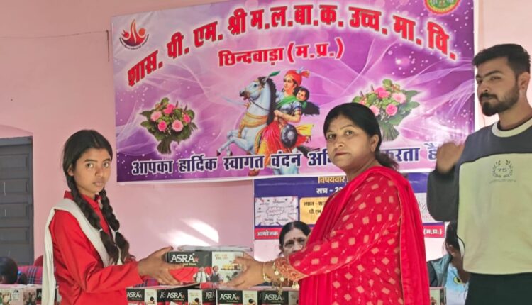 रेवांचल टाइम्स छिंदवाड़ा|मानवता और सेवा की मिसाल पेश करते हुए पीएम श्री शासकीय महारानी लक्ष्मीबाई (MLB) कन्या उच्चतर माध्यमिक विद्यालय की छात्राओं को कड़ाके की ठंड से राहत दिलाने हेतु स्नेहिल उपहार भेंट किए गए। दिलीप ट्रेडिंग कंपनी के संचालक विजय क्षत्रिय एवं श्रीमती सीमा क्षत्रिय ने अपनी पूजनीय माताजी स्व. श्रीमती रानी बाई क्षत्रिय की स्मृति में विद्यालय की 200 छात्राओं को जूते एवं मोजे वितरित किए।