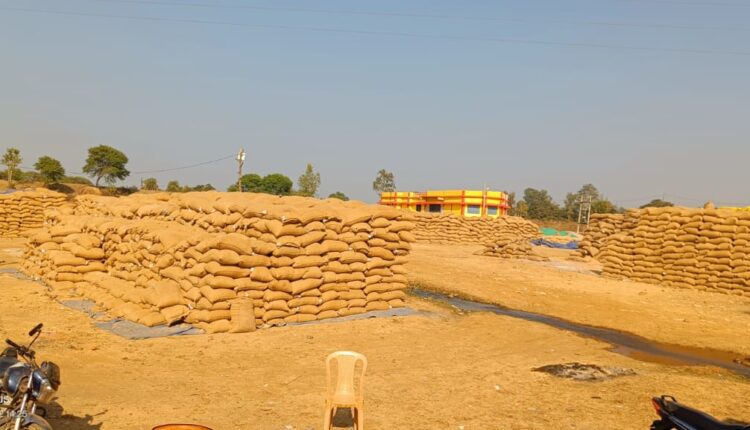 72 घंटे की शर्त बेअसर, मंडला के खरीदी केन्द्रों में खुले आसमान के नीचे पड़ा धान
