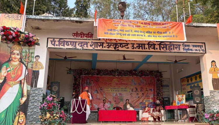 दैनिक रेवाँचल टाईम्स – सिहोरा, में उक्त उद्गार आज बी डी हाई स्कूल केशव बस्ती में आयोजित हिंदू सम्मेलन में विवेकानंद पटेल आर एस एस के विभाग सह कार्यवाह ने मंच को संबोधित करते हुए कही उन्होंने कहा कि अब समय आ गया है हम स्व बोध को अपना कर स्वदेशी, स्व आचरण, स्व भूषा, स्व भोजन, स्व भाषा को प्राथमिकता दी जाए आज के इस कार्यक्रम में वे मुख्य वक्ता के रूप में सम्मिलित हुए साथ ही कार्यक्रम के मुख्य अतिथि श्री आकर्षण जी महाराज रहे उन्होंने कहा कि हमे हमारे बच्चों को संस्कारवान बनाना होगा ताकि वे देश के विकास में भागीदार बन कर देश को नई ऊंचाइयों तक ले जा सके,