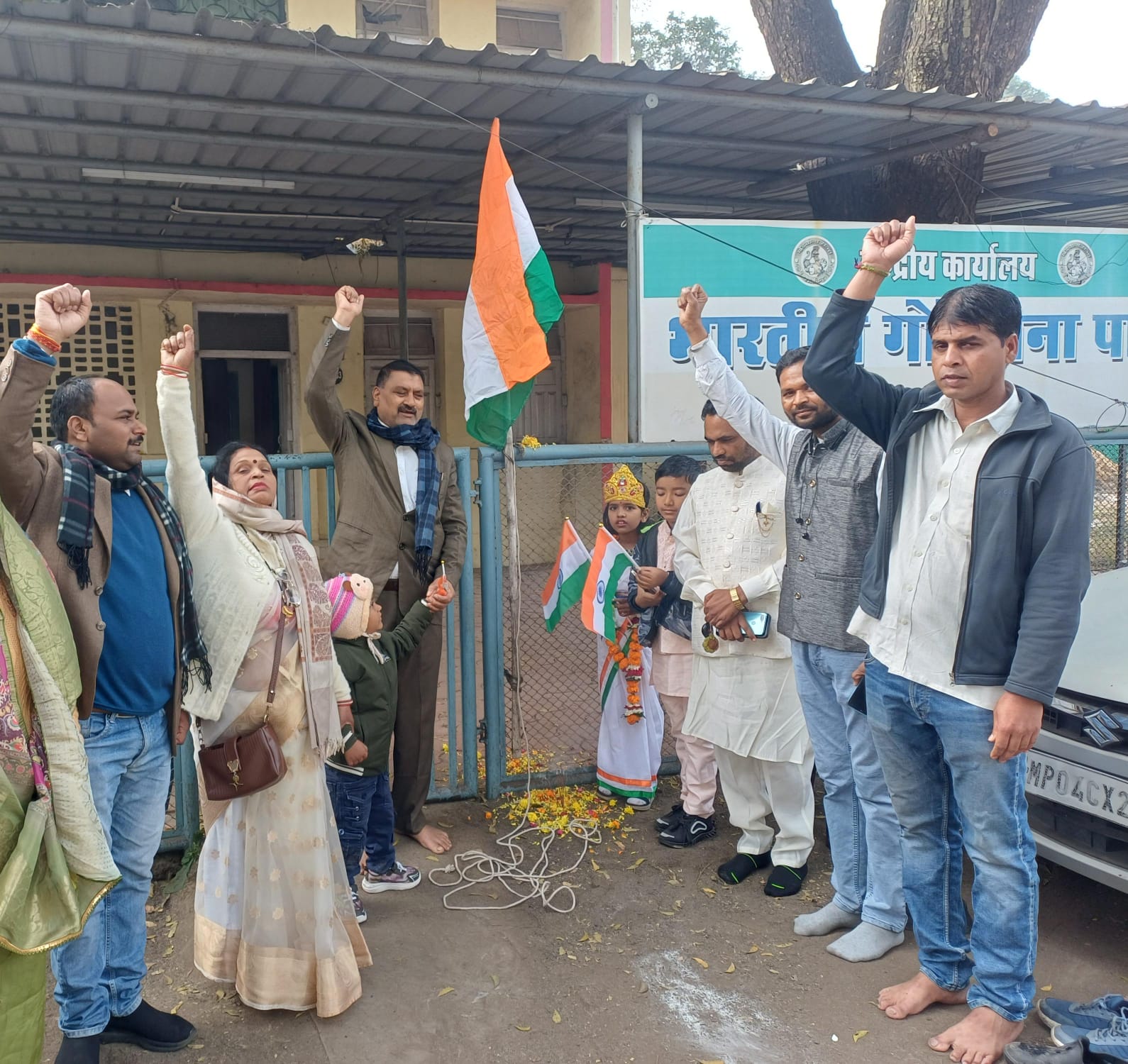 दैनिक रेवाँचल टाईम्स- भोपाल|अखिल भारतीय गोंडवाना पार्टी के केंद्रीय कार्यालय भोपाल में 77 वें गणतंत्र दिवस पर झंडावंदन किया गया,इस मौके पर पार्टी के राष्ट्रीय महासचिव सुखराम बौद्ध ने सभी प्रदेश एवं देशवासियों को शुभकामनाएं दीं. झंडावंदन के अवसर पर मौजूद सभी लोगों ने लोकतंत्र और संविधान की गरिमा में वृद्धि के लिए सभी अपनी-अपनी जिम्मेदारियां निभाने और अखिल भारतीय गोंडवाना पार्टी के संस्थापक लिंगोवासी व पूर्व विधायक मनमोहन शाह बट्टी के विचारों पर चलने का संकल्प लिया। इस दौरान पार्टी के राष्ट्रीय पदाधिकारी ,लक्ष्मी बौद्ध, वीरेंद्र पन्द्रराम, गयनेश धुर्वे, दुर्गेश इनवाती कार्यालय प्रभारी, अरुनेश, प्रदीप भलावी, जागेश धुर्वे, राहुल उईके, उदय प्रताप सिंह, श्रीवास, जनेशवर बट्टी, , प्रवीन कुमार सहित पार्टी के कार्यकर्ता उपस्थित रहे.