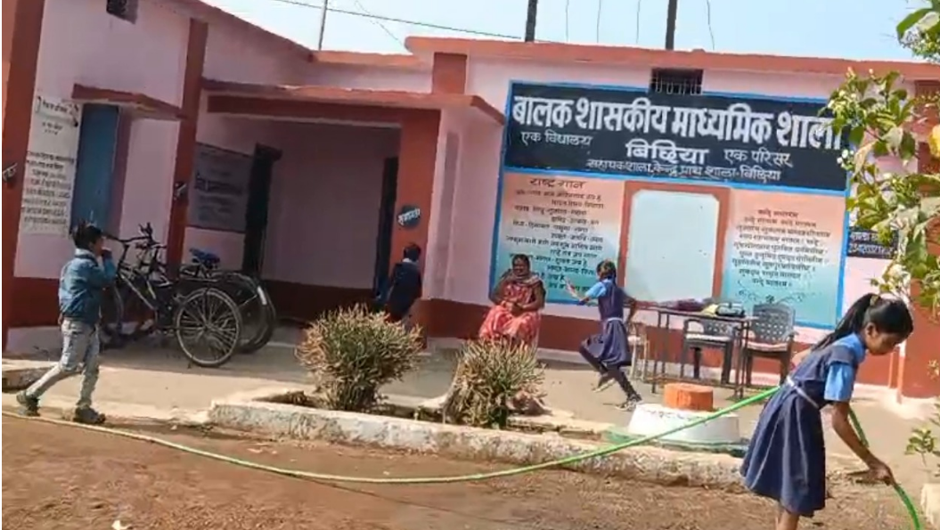 रेवांचल टाइम्स बिछिया मंडला आख़िर कैसे पढ़ेगा इंडिया और कैसे बढ़ेगा इंडिया जब शिक्षा के मंदिरों में किताबों की जगह ईंटें थमा दी जाएं, जब कक्षा की घंटी की जगह झाड़ू की आवाज़ गूंजे और जब मासूम हाथों से कलम नहीं बल्कि पानी की बाल्टियां उठवाई जाएं तब डिजिटल इंडिया और “विकसित भारत” जैसे दावे एक भद्दा मज़ाक बनकर रह जाते हैं।सरकारी योजनाओं के पोस्टर दीवारों पर चमकते हैं, लेकिन उन्हीं दीवारों में शासकीय स्कूल के बच्चों से तराई करवाई जाती है। यह कोई आरोप नहीं, बल्कि बालक शासकीय माध्यमिक शाला, एक विद्यालय एक परिसर, बिछिया से सामने आई शर्मनाक तस्वीरों की हकीकत है।