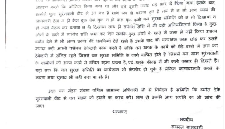 ग्रामीणों का कहना है कि वन रक्षक युवराज सिंह ठाकुर को तत्काल सुरंगवानी बीट से हटाया जाए