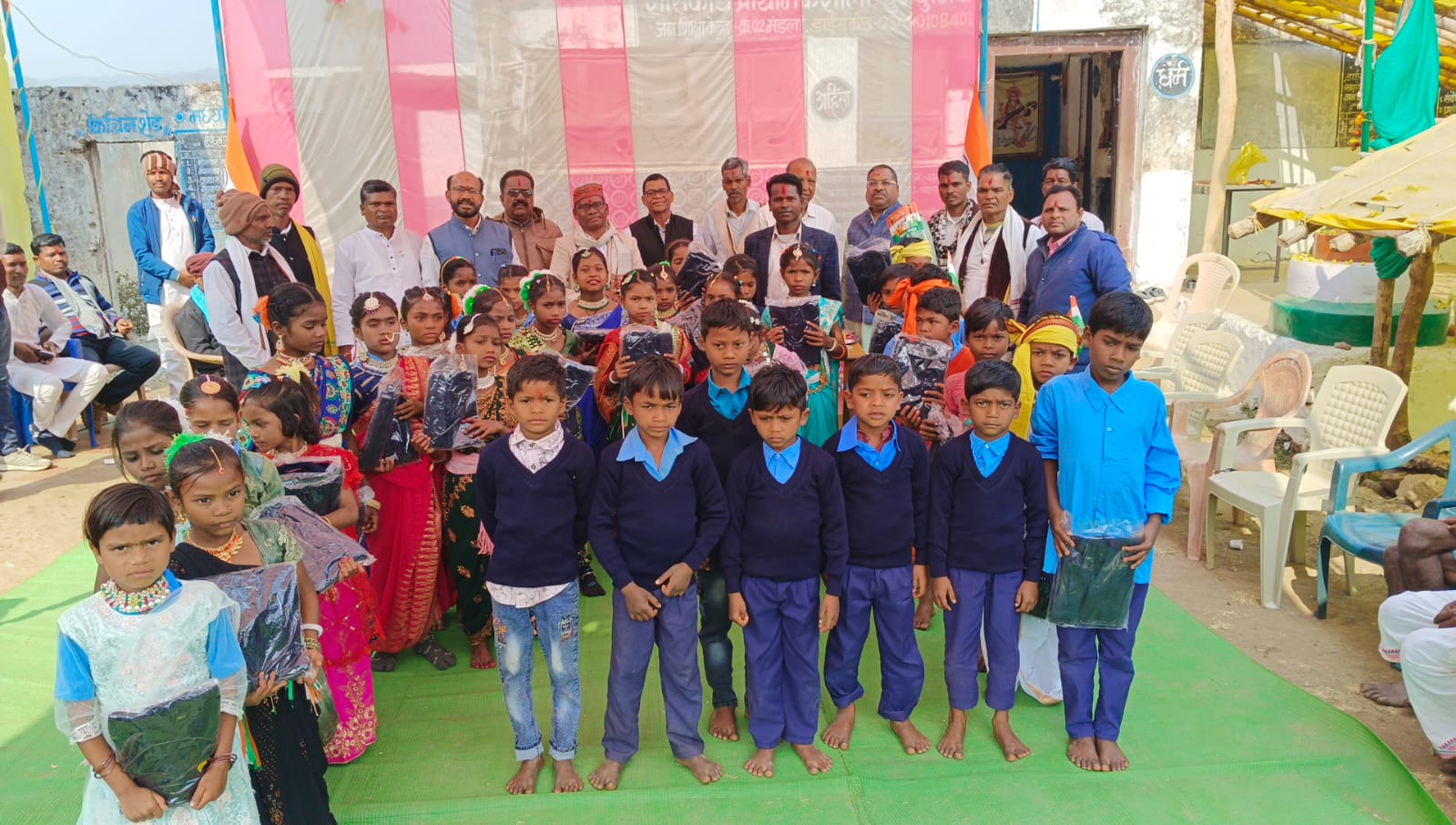 *दैनिक रेवांचल टाईम्स – मण्डला।* मण्डला के बुजबुजिया घोड़ाडीह में गणतंत्र दिवस समारोह के दौरान समाजसेवियों ने ग्रामीण बच्चों को स्वेटर वितरित किए।जिस अचानक दृश्य को देखकर सांस्कृतिक कार्यक्रम का आनन्द ले रहे ग्रामीण और अभिभावक भावाविभोर हो गए और बच्चों के चेहरों पर भी मुस्कान आ गई । समाजसेवी पी.डी.खैरवार ने बताया, कि कड़कड़ाती ठंड को देखते हुए समाजसेवियों ने बच्चों के स्वास्थ्य की चिंता कर उनकी इस खुशी के लिए यह पहल की और ठंड से बचने उनकी इस जरूरत को पूरा करने का प्रयास किया। इस प्रयास में समाजसेवी पूर्व प्रोफेसर ओमप्रकाश तपा, दिल्ली के किसी प्रतिष्ठित कंपनी के पूर्व अधिकारी मगनू लाल उईके,पूर्व उद्यान अधिकारी चंद्रगुप्त नामदेव,पूर्व प्राचार्य डी डी कुमरे, एसबीआई से प्रकाश धनंजय, पत्रकार सहजान परस्ते और पी डी खैरवार मुख्य सहयोगी रहे।इस तरह की छोटी-छोटी मदद जरूरत मंदों की पहचान करके हमेशा की जाती रहती है।आपने यह भी बताया है,कि यहां के बच्चे बिना शाला भवन के ही खुले आसमान और लकड़ी पन्नी से बनी झोपड़ी में बैठकर पढ़ाई करने की जद्दोजहद चार वर्षों से करते आ रहे हैं।यहां पर उपलब्ध पेयजल में फ्लोराइड होने के कारण बच्चों के दांत और स्वास्थ्य में भी खराबी आ रही है। शौचालय,रसोई, खेल मैदान , बाउंड्री वॉल की भी सुविधा नहीं है।जिसकी मांग लगातार चल रही है।