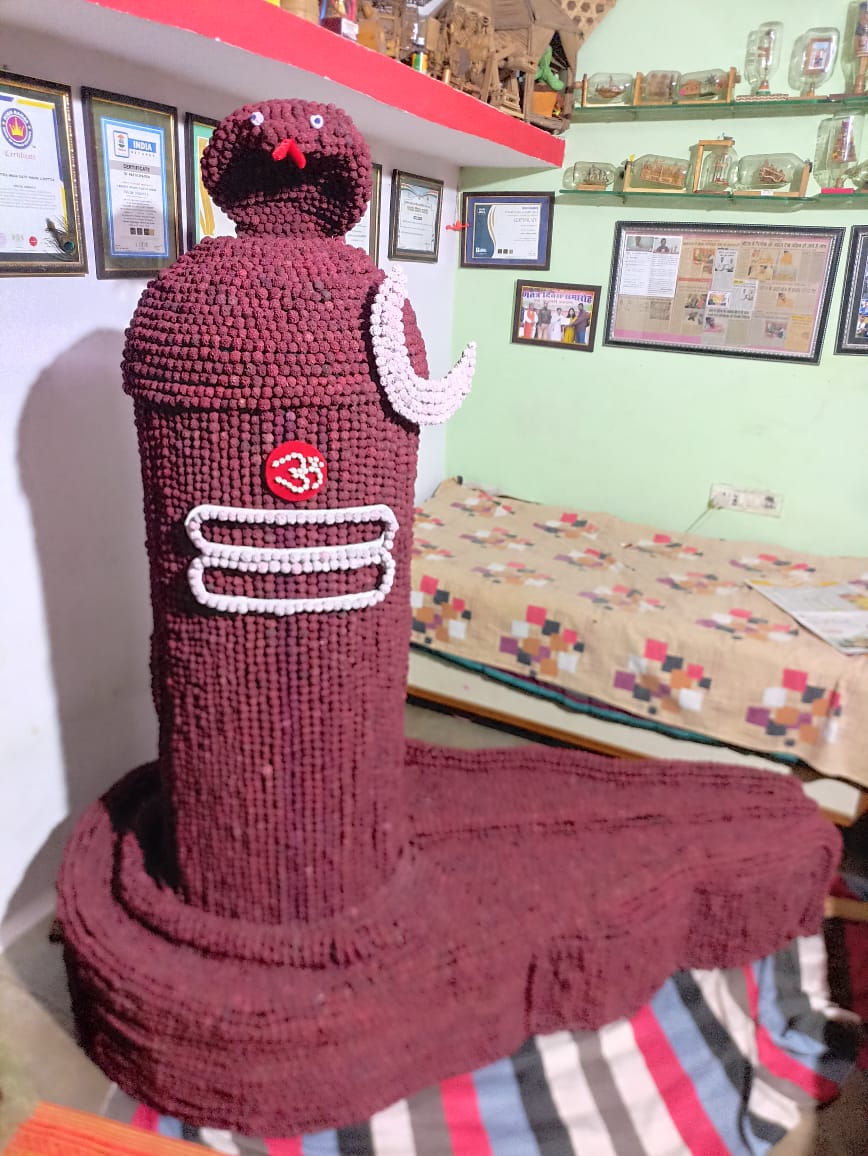 उनके इस संकल्प को साकार करने में मंदिर व्यवस्थापक सुधीर कांसकार एवं सहयोगी भक्तों ने रुद्राक्ष एवं आवश्यक सामग्री उपलब्ध कराकर पूर्ण सहयोग प्रदान किया।लगभग 25 हजार रुद्राक्ष से सुसज्जित यह शिवलिंग एक कलाकार की श्रद्धा, साधना और भावना का जीवंत स्वरूप है,जो न केवल कला है बल्कि शिव भक्ति की अनुपम अभिव्यक्ति भी है।महाशिवरात्रि की पूर्व संध्या पर