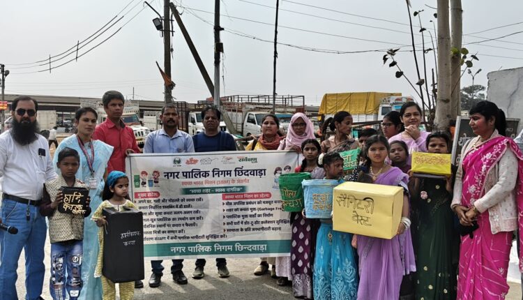 रेवांचल टाइम्स छिंदवाड़ा|नगर पालिक निगम छिंदवाड़ा द्वारा स्वच्छ सर्वेक्षण 2025-26 के संकल्प को साकार करने के लिए निरंतर प्रयास किए जा रहे हैं। इसी क्रम में महापौर विक्रम आहके एवं आयुक्त सी. पी. राय के मार्गदर्शन में वार्ड क्रमांक 40, गुरैया सब्जी मंडी क्षेत्र में एक वृहद जनजागरूकता कार्यक्रम आयोजित किया गया। कार्यक्रम का मुख्य केंद्र स्वच्छता, नशा मुक्ति और सिंगल यूज प्लास्टिक के विरुद्ध जंग रहा।