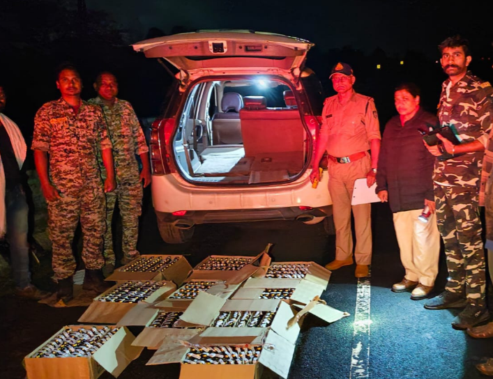 दिनांक 27.06.2025 की रात्रि में थाना निवास पुलिस द्वारा की गई गश्त के दौरान ग्राम गुंदलई कुकर्रा नाला के पास एक सफेद रंग की संदिग्ध महिंद्रा XUV-500 क्रमांक DL12CA2992 को रोकने का प्रयास किया गया इस दौरान वाहन चालक पुलिस को देखकर वाहन चालु हालत में छोड़कर मौके से भाग गया। पुलिस टीम द्वारा तत्परता दिखाते हुए वाहन की तलाशी ली गई, जिसमें से 10 कार्टून अंग्रेजी शराब (जिनियस ट्रिपल एक्स रम), प्रत्येक में 50-50 पाव (180 मि.ली.), कुल 90 लीटर शराब जिसकी अनुमानित कीमत लगभग ₹60,000 बरामद किये गये साथ ही परिवहन में प्रयुक्त वाहन महिंद्रा XUV-500 की अनुमानित कीमत ₹8 लाख रुपये है। वाहन एवं शराब को मौके पर विधिवत जप्त कर उक्त घटना में फरार वाहन चालक के विरुद्ध थाना निवास में अपराध धारा 34(2) आबकारी एक्ट के तहत अपराध पंजीबद्ध कर विवेचना में लिया गया है।