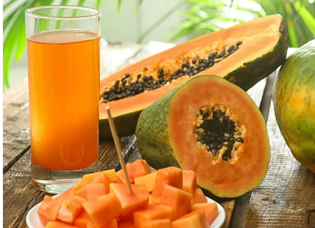 - पपीता में पपीन एंजाइम पाया जाता है, जो प्रोटीन को पचाने में मदद करता है।