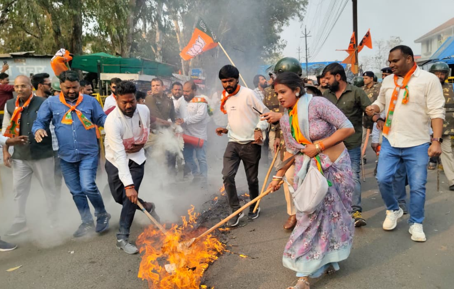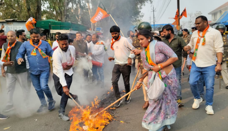 भाजपा जिलाध्यक्ष शेषराव यादव के नेतृत्व में कांग्रेस कार्यालय के पास भाजपा ने पुतला दहन कर किया विरोध प्रदर्शन