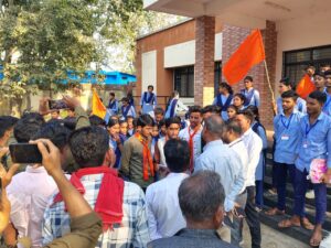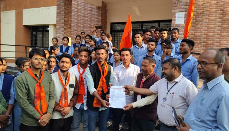 निर्माण, परिसर में बाउंड्री वॉल एवं सांस्कृतिक मंच निर्माण, निजी शैक्षणिक संस्थानों में फायर एनओसी की जांच तथा अवैध रूप से संचालित कोचिंग संस्थानों पर कार्रवाई की मांग भी ज्ञापन में शामिल रही। एबीवीपी पदाधिकारियों ने कहा कि विद्यार्थियों के भविष्य को ध्यान में रखते हुए प्रशासन को सभी बिंदुओं पर त्वरित निर्णय लेना चाहिए। उन्होंने चेतावनी दी कि यदि समस्याओं का शीघ्र निराकरण नहीं हुआ तो आंदोलन को और उग्र किया जाएगा। प्रदर्शन के दौरान बड़ी संख्या में छात्र छात्राएं उपस्थित।