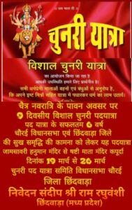 समापन (26 मार्च) चौरई और डुंगरिया होते हुए कपूरदा माता मंदिर में विशाल चुनरी अर्पण।