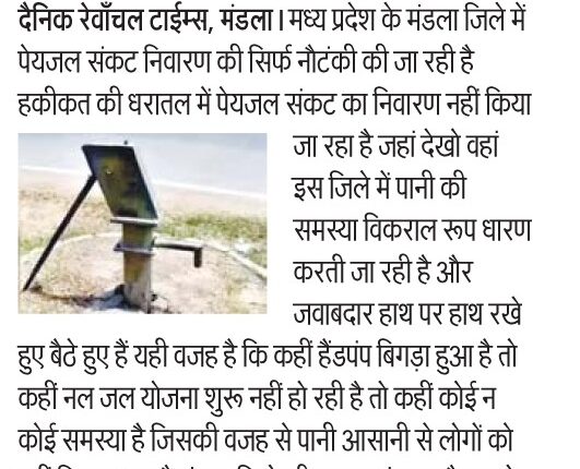 दैनिक रेवांचल टाइम्स | मंडला / नैनपुर मंडला जिले की नैनपुर तहसील अंतर्गत ग्राम परसवाड़ा में पेयजल समस्या को लेकर प्रकाशित खबर का असर अब जमीन पर दिखाई देने लगा है। वार्ड क्रमांक 3 में पिछले एक सप्ताह से खराब पड़ा हैंडपंप आखिरकार पीएचई विभाग नैनपुर द्वारा सुधार दिया गया है।