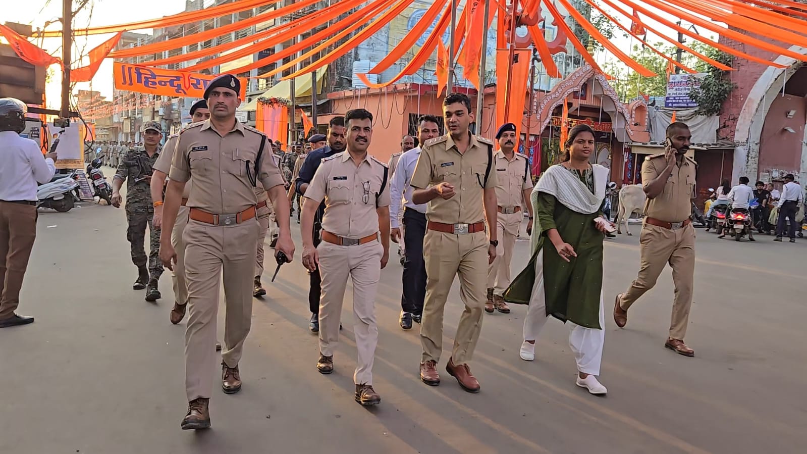 फ्लैग मार्च थाना कोतवाली से प्रारंभ होकर रेडक्रॉस, स्टेडियम के बाजू, जेलघाट, विवेकानंद चौक, रब्बानी चौक, उदय चौक, बुधवारी, रंगरेज घाट, इलाही चौक, पड़ाव, चिलमन चौक, बस स्टैंड, बिंझिया, कटरा, नर्मदा घाट, पॉलिटेक्निक कॉलेज, राजू कॉलोनी, झंडा चौक, चुना भट्टा, ईदगाह, नेहरू स्मारक, रपटा घाट, दादा धानीराम, कारीकोन, आगन तिराहा, बजरंग चौक होते हुए पुनः थाना कोतवाली में संपन्न हुआ।