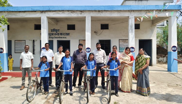 रेवांचल टाइम्स नैनपुर मंडला राज्य शिक्षा केंद्र भोपाल के निर्देशानुसार आज दिनांक 01/04/2026 को एकीकृत शासकीय कस्तूरबा कन्या माध्यमिक शाला नैनपुर में नवीन शैक्षणिक सत्र प्रारंभ पर प्रवेश उत्सव नगर पालिका अध्यक्ष श्रीमती कृष्णा पंजवानी, वार्ड पार्षद श्रीमती निकिता शर्मा, अनुविभागीय अधिकारी आशुतोष महादेव ठाकुर विकास खंड शिक्षा अधिकारी हीरेन्द्र वर्मा, खंड स्त्रोत समन्वयक विजेन्द्रधर द्विवेदी , शाला प्रबंधन समिति अध्यक्ष श्रीमती ज्ञानवंती पटेल एवं समस्त सदस्य , शाला के प्रधानाध्यापक विनोद कुमार चौरसिया, श्रीमती ज्योति उपाध्याय, शशांक कांड्रा, शारदा परतें,चरण सिंह इनवाती, श्रीमती आशा तेकाम एवं पालकों की उपस्थिति में शाला में नव प्रवेशित छात्राओं एवं पूर्व उपस्थित छात्राओं का तिलक बंदन कर मिष्ठान, नि: शुल्क पाठ्य-पुस्तक एवं पात्र छात्राओं को साइकिल वितरण किया गया। कार्यक्रम की शुरुआत मां सरस्वती जी के पूजन अर्चन पश्चात जनप्रतिनिधियों एवं उपस्थित अधिकारियों का प्रधानाध्यापक एवं शिक्षकों द्वारा गुलदस्ता भेंट कर, तिलक बंदन कर सम्मानित किया गया। इस अवसर पर उपस्थित जनप्रतिनिधियों एवं अधिकारियों द्वारा नवीन शैक्षणिक सत्र प्रवेश उत्सव के उपलक्ष्य में छात्राओं को नियमित शाला आने, मन लगाकर पढ़ाई करने एवं समस्त छात्राओं को नवीन शैक्षणिक सत्र की हार्दिक शुभकामनाएं प्रेषित की।