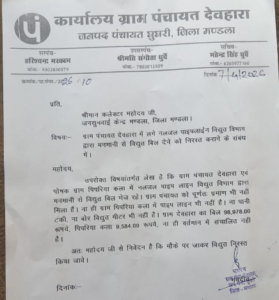 ग्राम पंचायत देवहारा के सरपंच हरिश्चंद्र मरकाम ने विद्युत विभाग पर गंभीर आरोप लगाते हुए बताया कि पंचायत को बिना ट्रांसफार्मर लगाए और बिना विधिवत विद्युत कनेक्शन दिए ही लाखों रुपये का बिजली बिल थमा दिया गया।