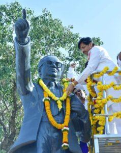 बाबा साहेब की प्रतिमा पर माल्यार्पण कर किया नमन, उनके आदर्शों पर चलने का लिया संकल्प