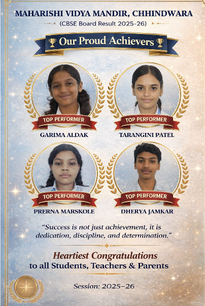महर्षि विद्या मंदिर, छिंदवाड़ा के मेधावियों ने लहराया सफलता का परचम