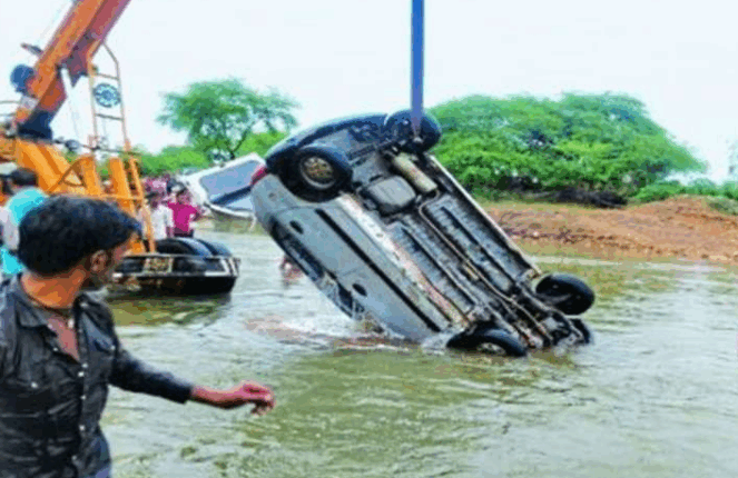 अमरकंटक रोड पर बड़ा हादसा…. तेज बारिश बनी आफत: नाले में बही कार, चार में से एक की मौत, तलाश जारी