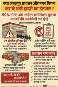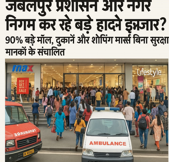 दैनिक रेवांचल टाइम्स, जबलपुर शहर में तेजी से बढ़ती व्यावसायिक गतिविधियों के बीच बड़े-बड़े मॉल, शॉपिंग मार्ट और दुकानों में सुरक्षा मानकों की अनदेखी से बड़ा हादसा कभी भी हो सकता है। प्रशासन और नगर निगम के जिम्मेदार अधिकारी आंख मूंदे बैठे हैं और मानों किसी बड़े हादसे का इंतजार कर रहे हैं।