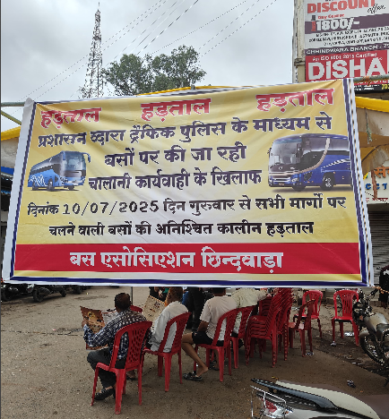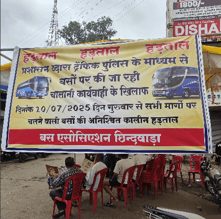 छिंदवाड़ा में बस ऑपरेटरों की बेमियादी हड़ताल: चालानी कार्रवाई के खिलाफ मोर्चा