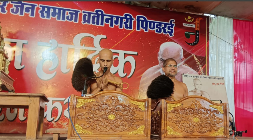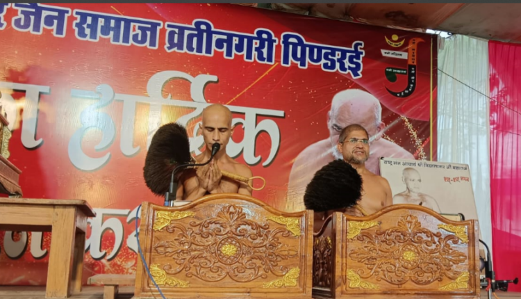 रेवांचल टाईम्स – मंडला विगत दिवस सकल दिगंबर जैन समाज व्रती नगरी पिंडरई के तत्त्वधान में सर्व श्रेष्ठ साधक आचार्य भगवन् श्रीविद्यासागरजी महाराज एवं अध्यात्म योगी आचार्य महाराज श्रीसमयसागरजी के मंगल आशीर्वाद से परम पूज्य मुनि श्रीनीरजसागरजी एवं परम पूज्य मुनि श्रीनिर्मदसागरजी की चातुर्मास कलश स्थापना का मांगलिक आयोजन ब्र. तरुण भैया जी के निर्देशन में भव्यता के साथ सम्पन्न हुआ….। व्रती नगरी पिंडरई पाठशाला की संचालिका ब्र. साधना दीदी जी ने बताया कि कर्यक्रम में पाठशाला के बच्चों के द्वारा विश्वगुरू भारत के विध्वन्श की कहानी योगा नृत्य के माध्यम से प्रस्तुत की गई..बच्चों की प्रस्तुति सभी के आकर्षण का केंद्र बनी। महिला मंडल अध्यक्ष श्रीमती मोनिका जी ने बताया कि आयोजन में आस पास की समाज के काफ़ी सारे भक्तगण मुनि संघ के दर्शन एवं उनकी देशना सुनने के लिए आए उपस्थित हुए थे। पिंडरई समाज के द्वारा बाहर से आई समाज का स्वागत किया गया। साधु सेवा समिति के मिडिया प्रभारी श्रीमान ऋषभ जैन ने बताया कि मुनिद्वय के प्रवचनों ने इस आयोजन में चार चाँद लगा दिए।