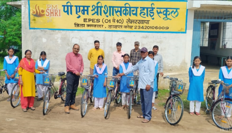 मंडला सेमरखापा स्कूल की 09 छात्राओं को मिली निःशुल्क साइकिल