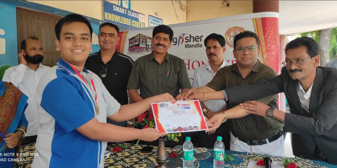 रेवाँचल टाईम्स – मंडला शिक्षा को बढ़ावा देने, छात्रों में स्वास्थ्य प्रतिस्पर्धा पैदा करने, अपने सामाजिक दायित्व का निर्वहन करने के मकसद से किंगफ़िशर ग्रुप द्वारा जिले के विभिन्न स्कूलों में मेधावी छात्र-छात्राओं को सम्मानित किया जा रहा है। इसी कड़ी में 19 जुलाई, शनिवार को ज्ञान दीप इंग्लिश मीडियम हायर सेकेंडरी स्कूल मंडला में कक्षा पहली से बारहवीं तक कक्षा में पहला, दूसरा और तीसरा स्थान हासिल करने वाले मेधावी छात्र-छात्राओं को मेडल, प्रमाण पत्र और गिफ्ट वाउचर देकर सम्मानित किया गया। ये गिफ्ट बाउचर किंगफ़िशर के सभी आउटलेट जैसे मल्टीप्लेक्स, वाटर पार्क, रंगोली व डॉलफिन रेस्टोरेंट में एक साल तक वैलिड रहेगा।