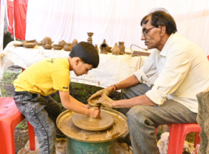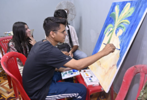 रेवाँचल टाईम्स – मंडला महान चित्रकार सैयद हैदर रज़ा की स्मृति में रज़ा फाउण्डेशन नई दिल्ली द्वारा पांच दिवसीय रज़ा स्मृति – 2025 के तहत विभिन्न कार्यक्रमों का आयोजन किया जा रहा है। पांच दिवसीय इस रज़ा स्मृति में कला व साहित्य का अनोखा समागम देखने को मिल रहा है। रविवार को सैयद हैदर रज़ा मार्ग स्थित रज़ा कला वीथिका में बड़ी संख्या में कला के शौकीन चित्रकारी करने पहुंचे। खासकर बच्चों और महिलाओं में पेंटिंग को लेकर खासा उत्साह देखा गया। बच्चे जहां ड्राइंग शीट और गुल्लक को पेंट करने में रूचि दिखा रहे थे तो महिलाएं छाते और गमलों में आकर्षक पेंटिंग कर रही थी। इसके साथ ही मिट्टी के चॉक पर मिट्टी के दिए, गुल्लक आदि चीज़े बनाना सीख रहे है। होटल बालाजी होटल में आयोजित स्क्रैप मूर्तिकला शिविर में मूर्तिकार नरेंद्र देवांगन, जितेंद्र साहू, सुमित वर्मा और अमित कुमार सिन्हा स्क्रैप (कबाड़) से मूर्ति तैयार कर रहे है।