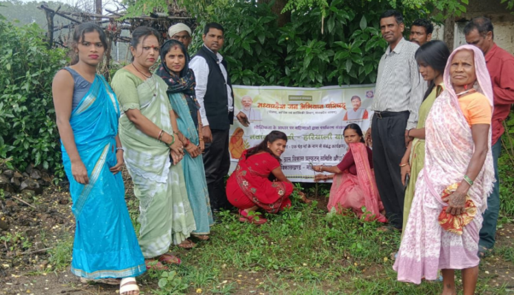 मोहगाँव ब्लाक के देवगाँव में सखियों के साथ निकाली हरियाली यात्रा, किया गया पौधारोपण