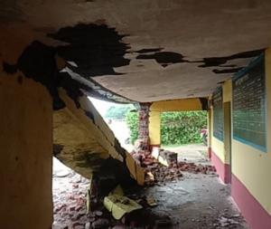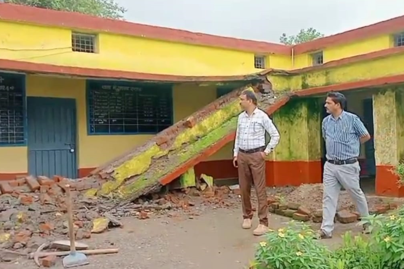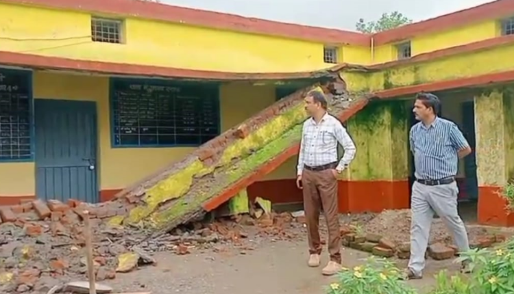 भरभरा कर ढह गई माध्यमिक शाला के बरामदे की छत, बच्चे सुरक्षित