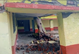 आख़िरकार सरकारी स्कूल का भवन ढह ही गया खुली भ्रष्टाचार की पोल