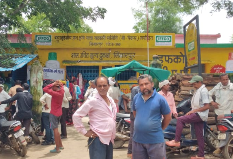 किसनों भारी इतज़ार के बाद पहुँचा सिंगारपुर लेंपस में एक गाड़ी यूरिया खाद, खाद के लिए किसानों की भारी भीड़
