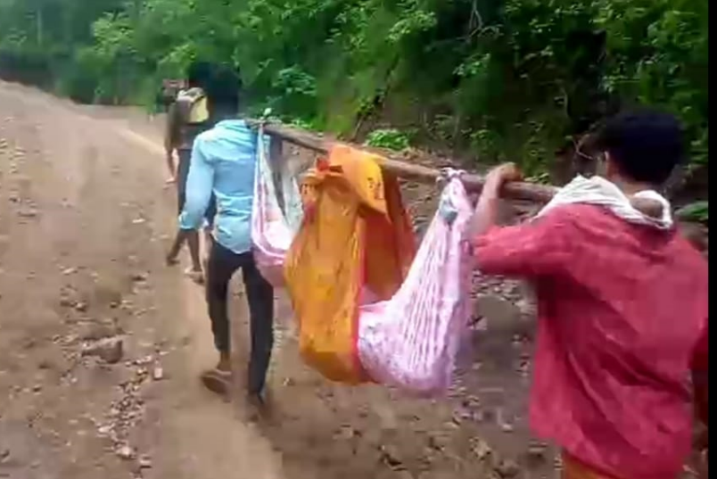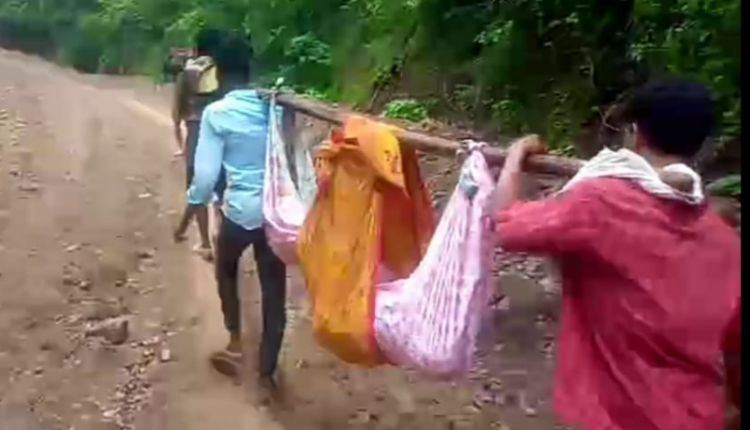 दैनिक रेवांचल टाइम्स – आदिवासी बाहुल्य जिला डिंडोरी में मानवता को शर्मसार करने वाला मामला सामने आया है जिसकी तस्वीरें सोशल मीडिया में वायरल हो रही है। जिसमें कुछ ग्रामीण एक डोली के सहारे एक महिला शव को अस्पताल तक लाने के लिए जद्दोजहद कर रहे हैं। कुछ ग्रामीण इसका वीडियो बनाकर सोशल मीडिया में वायरल कर दिया हैं। बताया जा रहा है कि शाहपुर थाना क्षेत्र के दुनिया बघाड़ गांव में बुधवार की रात श्रीवती बाई नामक महिला को सर्प ने काट लिया था और परिजन उसे अस्पताल ले जा पाते तब तक महिला की मौत हो गई।कुछ ग्रामीणों के साथ महिला के शव को पोष्टमार्टम के डोली में रखकर ऊबड़खाबड़ रास्ते से एम्बुलेंस तक लेकर आये थे चूंकि गांव तक सड़क नही होने से एम्बुलेंस नही पा रही थी लिहाजा सात किलोमीटर पैदल चलकर ग्रामीण एम्बुलेंस तक पहुंचे और अस्पताल लेकर आये लेकिन समय पर प्राथमिक उपचार न मिलने के कारण महिला की मौत हो गई। यह घटना उस गांव की है जिसे खुद क्षेत्रीय सांसद फग्गन सिंह कुलस्ते ने गोद लिया है। विकास के दावों के बीच इस गांव की जमीनी हकीकत कुछ और ही बयां करती है। महिला की मौत के बाद जो तस्वीर सामने आई, वो सिस्टम की संवेदनहीनता पर सवाल खड़े करती है…? महिला के शव को उसके परिजन बांस के सहारे कपड़े में बांधकर कंधे पर लादकर जिला अस्पताल लेकर पहुंचे ताकि पोस्टमार्टम कराया जा सके। इस घटना ने प्रशासनिक लापरवाही की पोल खोलकर रख दी है। गांव वालों ने सवाल उठाए हैं कि जब सांसद ने गांव को गोद लिया है और विकास नही करना था गांव को सांसद जी ने गोद क्यों लिया?