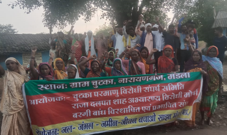 कल शाम में 1 अगस्त को पेन ठाना राज राजेश्वरी मंडला से निकली गोंडवाना राज्य संकल्प यात्रा भी चुटका पहुंची। ग्रामीणों ने यात्रा में आए सभी लोगों का आत्मिय स्वागत किया। ग्रामीणों ने यात्रा में आए लोगों को बताया कि चुटका परमाणु परियोजना 2009 से प्रस्तावित है।जब से यह परियोजना प्रस्तावित हुआ है तबसे ग्राम सभा इस परियोजना का विरोध कर रही है। विरोध के कारण दो बार पर्यावरणीय जन सुनवाई स्थगित करना पड़ा था। भूमि अधिग्रहण को लेकर लेकर ग्रामीणों ने लिखित में आपत्तियां की थी। परन्तु सभी आपत्तियों का दर किनार कर जबलपुर कमिश्नर ने भू अर्जन का अवार्ड पारित कर दिया। फिर बिना सहमति के जमीन का मुआवजा खाते में डाल दिया गया। लोकतांत्रिक और कानूनी प्रावधानों का जबरदस्त उलंघन किया गया है। संकल्प यात्रा का नेतृत्व कर रहे मंडला जिला गोंडवाना गणतंत्र पार्टी युवा मोर्चा के अध्यक्ष संतोष परस्ते ने चुटका परमाणु परियोजना के संघर्षों का पूर्ण समर्थन किया। उन्होंने कहा कि बांध परियोजनाओं, राष्ट्रीय उद्यानों, टाइगर प्रोजेक्ट्स ,वन्यजीव कॉरिडोर और चुटका जैसी घातक विकास योजनाओं के नाम पर आदिवासियों को अपनी पैतृक जमीन से बेदखल किया जा रहा है। इसे रोका जाना चाहिए। गोंडवाना गणतंत्र पार्टी के प्रवक्ता राधेश्याम कोकड़िया ने कहा कि वनाधिकार कानून, जो हमारी भूमि से हमारा रिश्ता जोड़े रखता है। यह कानून व्यक्तिगत और सामुदायिक वन अधिकार का हक देता है, जो पूरे समाज को एकजुट करता है। परन्तु ऐतिहासिक अन्याय जो हम पर पहले हुआ था और अब भी हो रहा है। गोंडवाना स्टूडेंट यूनियन प्रदेश महासचिव सेम परते ने कहा कि हमारा रूढ़िगत और पारंपरिक व्यवस्था को कमजोर किया जा रहा है। पेसा कानून और नियम के मंशा अनुरुप सरकारी अधिकारी इसका पालन नहीं कर रहे हैं। यह संकल्प यात्रा हक, पहचान और हमारी पीढ़ियों के सम्मान की आवाज़ है। इस संकल्प यात्रा में शामिल लोगों के अलावा चुटका गांव के सोना बाई, सरिता बाई, हीरा बती बाई,कमल सिंह बरकङे, तेजी लाल कोकङीया,गेहबर सिंह,संतराम,धरम सिंह आदि की विशेष उपस्थिति थी।