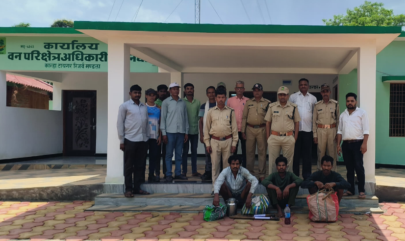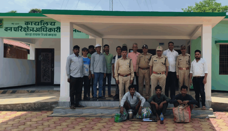 कान्हा टाईगर रिजर्व तीन लोगों परिक्षेत्र के अन्दर मत्स्य आखेट करते हुए पकड़े