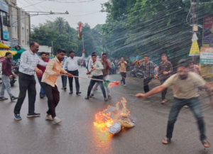 कांग्रेस पार्टी नेहरू स्मारक में केंद्र सरकार एवं निर्वाचन आयोग का पुतला दहन किया