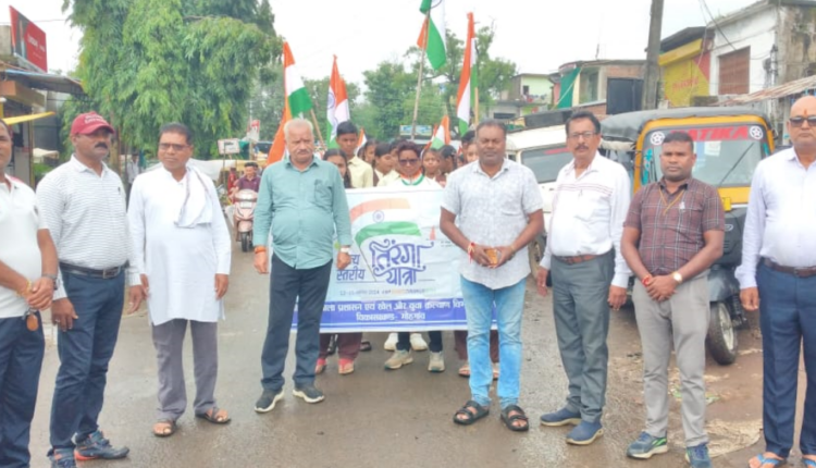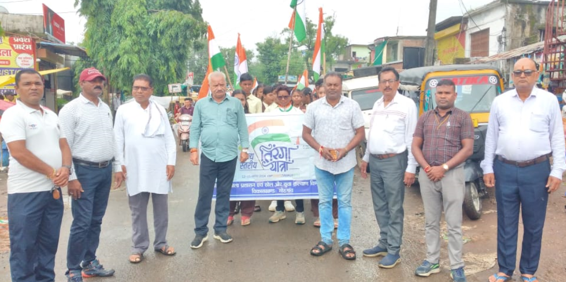 रेवांचल टाईम्स – मंडला, देश प्रेम की अलख जगाने हर घर तिरंगा यात्रा अभियान में विकासखंड मुख्यालय मोहगांव में विकासखंड स्तरीय देश के अलग जगाने वाले देश प्रेम एवं देशभक्ति की भावना आन बान और शान के साथ तिरंगे को हर घर तक पहुंचाने और लोगों को जागरूक करने के उद्देश्य से स्कूली बच्चों के साथ तिरंगा यात्रा निकाली गई,पूरे देश में आजादी 79 वीं अमृत महोत्सव उत्कृष्ट विद्यालय मोहगांव एवं समस्त विद्यालय की छात्र-छात्राएं अधिकारी कर्मचारी एवं जनप्रतिनिधि,वरिष्ठ नागरिक, समाज सेवी शामिल हुए। कार्यकम के मुख्य अतिथि जनपद पंचायत अध्यक्ष गत सिंह भवेदी, जनपद पंचायत उपाध्यक्ष व जनपद शिक्षा समिति सभापति शिव कुमार मिश्रा, पूर्व जनपद पंचायत सदस्य नीलू दुबे, विकास खंड शिक्षा अधिकारी अजीत कुमार जैन, शासकीय उत्कृष्ट उच्चतर माध्यमिक विद्यालय मोहगांव संकुल प्राचार्य दीपक कछवाहा, खेल एवं युवा कल्याण विभाग मोहगाँव खेल समन्वयक सुश्री रामा परते, घुघरी खेल समन्वयक शशांक मिश्रा, पीएम श्री विद्यालय सिंगारपुर पीटीआई अशोक वरकडे, वरिष्ठ नागरिक जाकिर हुसैन, प्रेम धुर्वे, जय बघेल, हीरा सिंह उइके, शिक्षक अनिल दुबे, रामनाथ मरावी, राजेश गोहानी, भरत मरावी, अमित मरावी, योगेश्वर मसराम, विंध्यवासिनी साहू, दिव्या मरकाम, भावना पटेल, भावना झरिया, सोनिया कछवाहा, ममता कानतोड़े, सविता भांडे सहित सभी विद्यालयों के समस्त शिक्षक गण व छात्र – छात्राएं शामिल रहे।