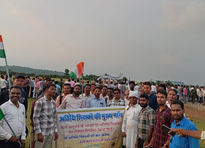 अतिथि शिक्षक परिवार मंडला जिला अध्यक्ष पी.डी.खैरवार ने बताया है,कि जिले के अतिथि शिक्षक बड़ी संख्या में सेमरखापा ठिकरिया में बने हैलीपैड पहुंचकर मुख्यमंत्री से भेंट कर नियमित रोजगार दिलाने की मांग की है। मांगपत्र लेकर विचार करने का संकेत देते आगे बढ़ गए । इधर अतिथि शिक्षक आवाज दे देकर ध्यानाकर्षण कराने का खूब प्रयास किया। जिस पर अतिथि शिक्षकों ने प्रतिक्रिया भी दी है,कि अब सांकेतिक आस्वासन से काम चलने वाला नहीं है। पूरा विश्वास जताया गया है,कि मुख्यमंत्री जी मण्डला जिले को दर्जनों सौगातें देने जनता के बीच पहुंचे हैं, निश्चित ही अतिथि शिक्षक जैसे जमीनी कार्य करने वालों की मांगों पर अवश्य कार्यवाही करेंगे।