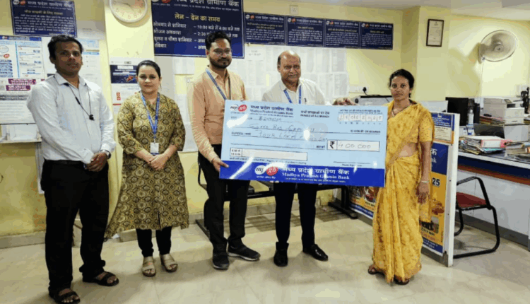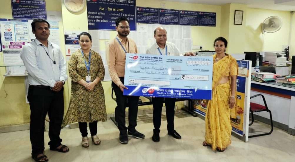 मध्यप्रदेश ग्रामीण बैंक, बिंझिया शाखा : ग्राहक स्वर्गीय काशीराम चौधरी की मृत्यु पर नॉमिनी को मिला 4 लाख का चेक