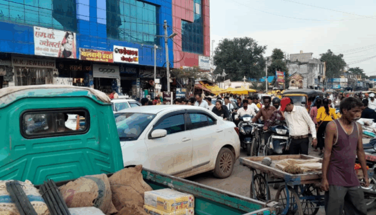 पौने तीन करोड़ की मॉडल सड़क पर अतिक्रमण सड़क पर वाहनो की पार्किग, पल भर में लग जाता है जाम
