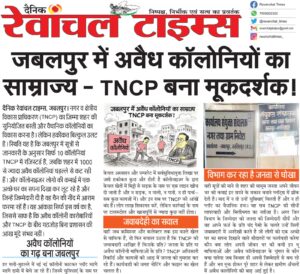 दैनिक रेवांचल टाइम्स जबलपुर नगर व क्षेत्रीय विकास प्राधिकरण (TNCP) का जिम्मा शहर की सुनियोजित बस्ती और वैधानिक कॉलोनियों का विकास करना है। लेकिन हकीकत बिल्कुल उलट है। स्थिति यह है कि जबलपुर में सूत्रों से जानकारी के अनुसार सिर्फ 10 कॉलोनियां TNCP में रजिस्टर्ड हैं, जबकि शहर में 1000 से ज्यादा अवैध कॉलोनियां धड़ल्ले से कट रही हैं। और कॉलोनाइजर लोगो की कमाई में एक अच्छे घर का सपना दिखा कर लूट रहे है और जिन्हें जिम्मेदारी दी है वह चैन की नींद में आराम फरमा रहें हैं।