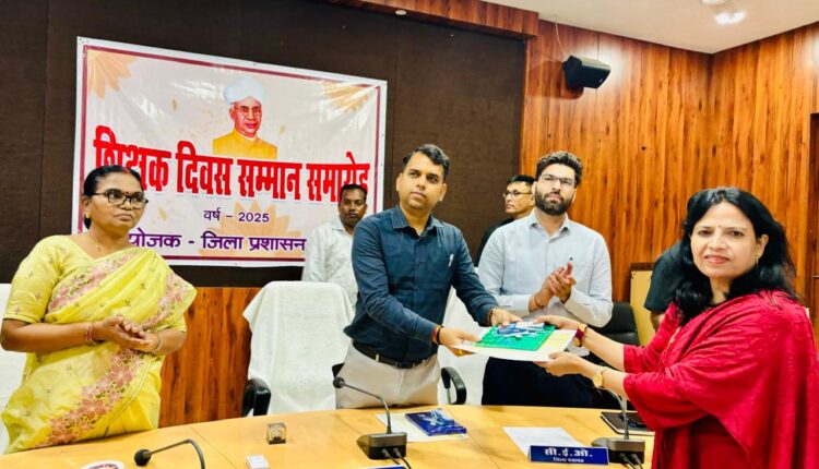 रेवांचल टाइम्स मंडला शिक्षक दिवस के अवसर पर आयोजित सम्मान समारोह में कन्या हाई स्कूल मोहगांव की प्राचार्य कुमारी नंदनी यादव को उनके उत्कृष्ट शैक्षणिक कार्य, अनुकरणीय योगदान और विद्यार्थियों के सर्वांगीण विकास हेतु किए गए प्रयासों के लिए कलेक्टर सोमेश मिश्रा द्वारा प्रशस्ति पत्र प्रदान कर सम्मानित किया गया।इस अवसर पर कलेक्टर ने कहा कि “शिक्षा ही समाज की दिशा तय करती है और शिक्षक ही विद्यार्थियों के भविष्य के निर्माता होते हैं। नई पीढ़ी को संस्कार और गुणवत्तापूर्ण शिक्षा देने में शिक्षकों की भूमिका सबसे महत्वपूर्ण है।”