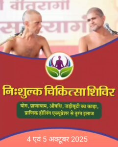 लघु तीर्थ क्षेत्र व्रती नगरी पिंडरई में दो दिवसीय निःशुल्क चिकित्सा शिविर