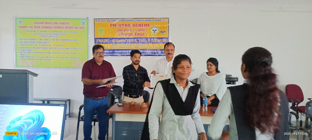 रेवांचल टाईम्स – डिण्डौरी जिले में प्रधानमंत्री कॉलेज ऑफ एक्सीलेंस शासकीय चंद्रविजय स्नातकोत्तर अग्रणी महाविद्यालय डिण्डौरी में पी.एम.उषा सॉफ्ट कंपोनेंट 03 कौशल विधा अंतर्गत 30 दिवसीय कम्प्यूटर एवं टैली कोर्स पर रोजगारोन्मुखी प्रशिक्षण कार्यक्रम आयोजित किया गया। यह कार्यक्रम प्रधानमंत्री कॉलेज ऑफ एक्सीलेंस शासकीय चंद्रविजय स्नातकोत्तर अग्रणी महाविद्यालय डिण्डौरी एवं सेडमैप संस्था द्वारा आयोजित किया गया। इस कार्यक्रम में विद्यार्थियों नेकंप्यूटर एवं टैली पर आधारित प्रशिक्षण, कम्प्यूटर का परिचय, इनपुट-आउटपुट डिवाइस, एम.एस.वर्ड, समूह चर्चा, साक्षात्कार की तैयारी, रिज्यूम बनाना एवं टैली पर आधारित कम्पनी बनाना, लेजर, स्टॉक, गोडाउन, डिसकाउंट, मेडीसिन स्टॉक आइटम, सी.जी.एस.टी. एस.जी.एस.टी. एवं टैली पर आधारित सम्पूर्ण जानकारी, इत्यादि प्रशिक्षण प्राप्त किया। सेडमैप से आए एस.के.शर्मा के समन्वय में यह कार्यक्रम आयोजित किया गया। 27 सितंबर को समापन के अवसर पर सभी विद्यार्थियों को प्रशिक्षण के प्रमाण पत्र वितरित किए गए इस कार्यक्रम में संस्था की प्राचार्य डॉ. श्री सुशील कुमार दुबे ने उच्च शिक्षा विभाग व सेडमैप के प्रति आभार व्यक्त करते हुए शासन की इस महती योजना के विषय में प्रकाश डाला व विद्यार्थियों को यह बताया कि इस तरह के प्रशिक्षण उनके भविष्य के लक्ष्यों को पूर्ण करने हेतु मील का पत्थर साबित होंगे। इस कार्यक्रम में पी.एम.उषा सॉफ्ट कंपोनेंट 03 कौशल विधा के नोडल अधिकारी डॉ. अमित बेलिया ने पी.पी.उषा की विभिन्न योजनाओं से परिचित कराते हुए विद्यार्थियों को प्रेरणादाई संदेश दिया।