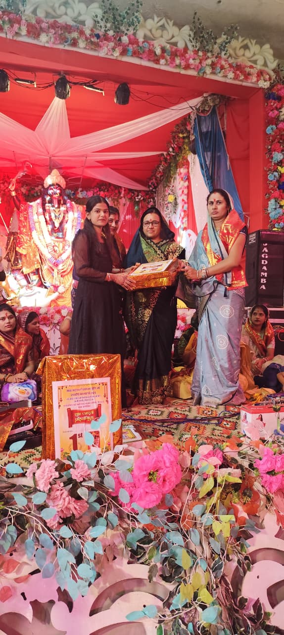 नवरात्रि पर्व की पंचमी तिथि पर मां आदि शक्ति दुर्गोत्सव समिति द्वारा भव्य महाआरती का आयोजन किया गया। इसी अवसर पर आरती प्रतियोगिता रखी गई, जिसमें सबसे सुंदर आरती की झांकी को इनाम देकर सम्मानित किया गया।