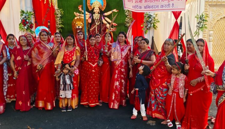 मातृशक्ति एवं दुर्गा वाहिनी के तत्वाधान में नगर के समस्त पंडालो में हो रहा शस्त्र पूजन