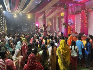 रेवाँचल टाईम्स – मण्डला, जिले के नवशक्ति दुर्गोत्सव समिति राजीव कॉलोनी बजरंग चौक में स्थापित माता रानी के दर्शन के लिए दूर-दूर से धर्मप्रेमी पहुंच रहे हैं विगत 40 वर्षो से शारदेय नवरात्रि में स्थापना का दौर लगातार चला आ रहा है सामाजिक कार्यकर्ता प्रियदर्शन पटैल ने बताया कि हर वर्ष माता रानी के जगराता के साथ सामाजिक और धार्मिक कार्यक्रमों का आयोजन किया जाता है। वहीं अखिल भारतीय विद्यार्थी परिषद के जिला संयोजक वागीश पटैल ने बताया कि महिष्मति घाट की तर्ज पर आयोजित महाआरती में जिला पंचायत अध्यक्ष संजय कुशराम,जनपद पंचायत अध्यक्ष सोनू भलावी, अभाविप विभाग संगठन मंत्री रामधार सिंह बैंस ने माता रानी की महाआरती की है और स्थापित हनुमान मंदिर के जीर्णोद्धार को लेकर चर्चा आदि भी की गई है। यहां पर बच्चों के लिए मटकी फोड प्रतियोगिता के साथ रंगोली प्रतियोगित भी आयोजित की गई थी विजेता बच्चों को उपहार प्रदान किए गए। नव शक्ति दुर्गोत्सव समिति राजीव कॉलोनी बजरंग चौक द्वारा शारदेय नवरात्र 1989 से निरंतर माता रानी की प्रतिमा विराजित की जा रही है। इस वर्ष भी समिति ने माता रानी की अत्यंत आकर्षक और मनमोहक प्रतिमा स्थापित की है जो नगरवासियों और श्रद्धालुओं के लिए आकर्षण का केंद्र बन गई है। प्रतिमा में माता रानी कमल के पुष्प पर विराजित हैं और उनके गोद में बाघ के बच्चे को बैठाया गया है जो विशेष रूप से लोगों का ध्यान खींच रहा है। इस अनोखे एवं प्रभावशाली स्वरूप ने सोशल मीडिया पर भी तहलका मचा दिया है और हजारों लोग इस प्रतिमा की प्रशंसा कर चुके हैं। समिति ने जिले के सभी लोगों को माता रानी के दर्शन आमंत्रित किया है। आयोजकों का कहना है कि इस प्रकार के आयोजन न केवल धार्मिक और सांस्कृतिक दृष्टि से महत्वपूर्ण हैं बल्कि समुदाय में एकजुटता और सामाजिक सौहार्द को भी बढ़ावा देते हैं।