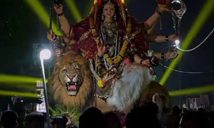 रेवांचल टाइम्स नारायणगंज, मंडला।नगर सहित आसपास के क्षेत्रों में विजयादशमी का पर्व बड़े ही हर्षोल्लास और धार्मिक श्रद्धा के साथ मनाया गया। मंगलवार को सुबह से ही नगर का माहौल भक्तिमय और उत्साहपूर्ण हो गया था। ग्राम पंचायतों और दुर्गा समितियों द्वारा सजाए गए पंडालों से देवी दुर्गा की भव्य शोभायात्रा निकाली गई। जगह-जगह श्रद्धालुओं ने स्वागत द्वार बनाकर चल समारोह का अभिनंदन किया।डी.जे. और बैंड की धुनों पर भक्तजन नाचते-गाते चल रहे थे, वहीं महिलाएं कलश लेकर चल समारोह में शामिल हुईं। नगर के मुख्य मार्गों से होते हुए यात्रा स्थानीय घाट की ओर बढ़ी। इस दौरान श्रद्धालुओं की भारी भीड़ रही। यात्रा के दौरान जगह-जगह भंडारे और प्रसाद वितरण का आयोजन किया गया, जिसमें हजारों श्रद्धालुओं ने भाग लेकर पुण्य लाभ लिया।