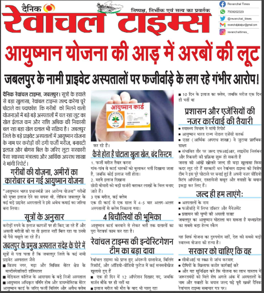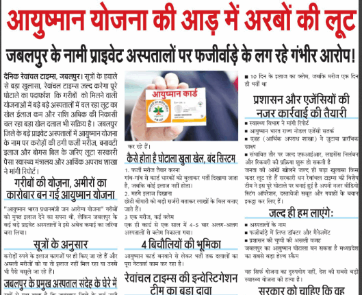 * जबलपुर जिले के बड़े प्राइवेट अस्पतालों में आयुष्मान योजना के नाम पर करोड़ों की ठगी