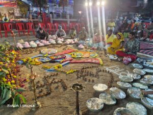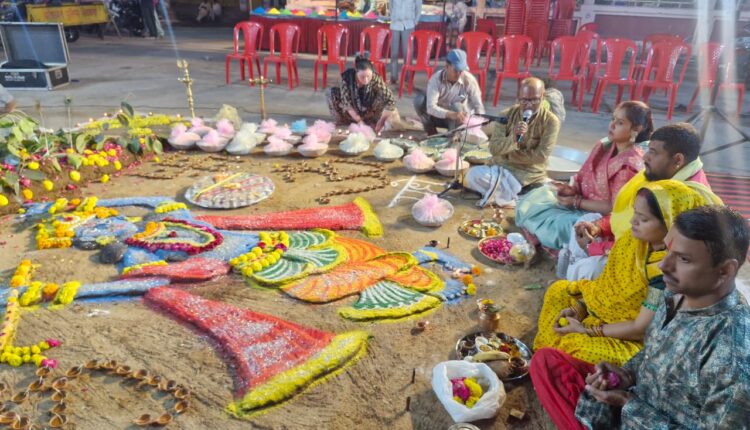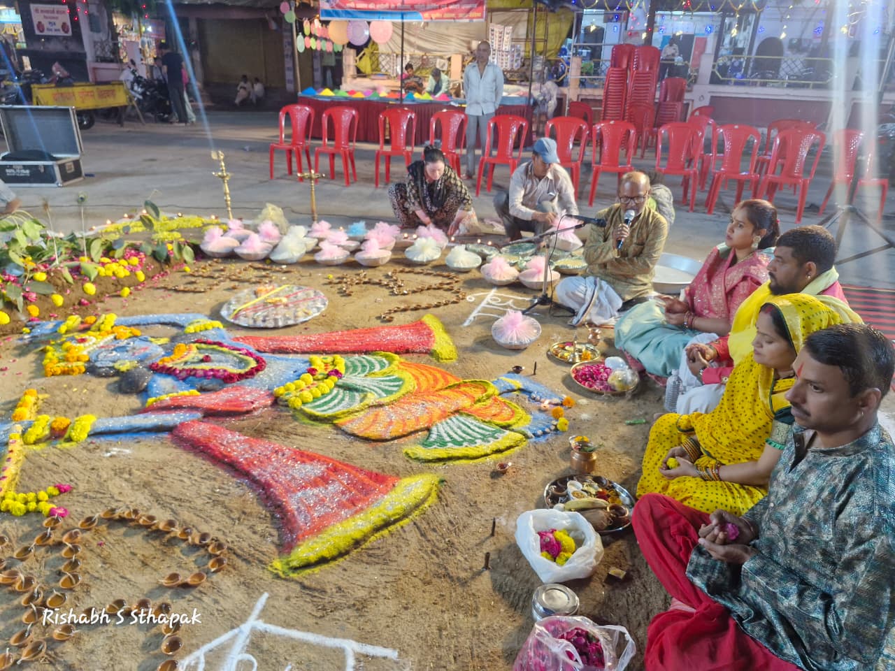 कार्यक्रम का शुभारंभ श्री सत्यधर्म मंडल, श्रीराम मंदिर बड़ी माता मंदिर ट्रस्ट एवं श्रीरामलीला मंडल के संयुक्त तत्वावधान में सायं 6 बजे किया गया। आरती के पश्चात भक्तों ने सपरिवार भगवान श्रीराम के चरणों में दीप प्रज्वलित किए और सामूहिक रूप से गोवर्धन पूजन में भाग लिया। पूरे मंदिर परिसर में “जय श्रीराम” और “गोवर्धन महाराज की जय” के जयघोष गूंजते रहे। प्रांगण में भूमि पर गोबर एवं रंगोली से भगवान श्रीकृष्ण एवं गोवर्धन पर्वत की प्रतिकृति स्वप्निल विश्वकर्मा द्वारा तैयार की गई।